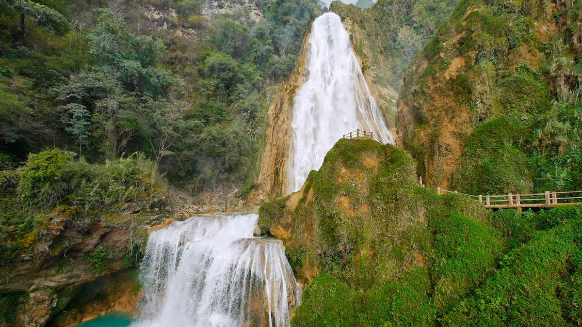 Al dejar atrás la calma profunda del cañón, la energía del agua se transforma en movimiento puro. En El Chiflón, el río San Vicente decide que su camino debe ser
