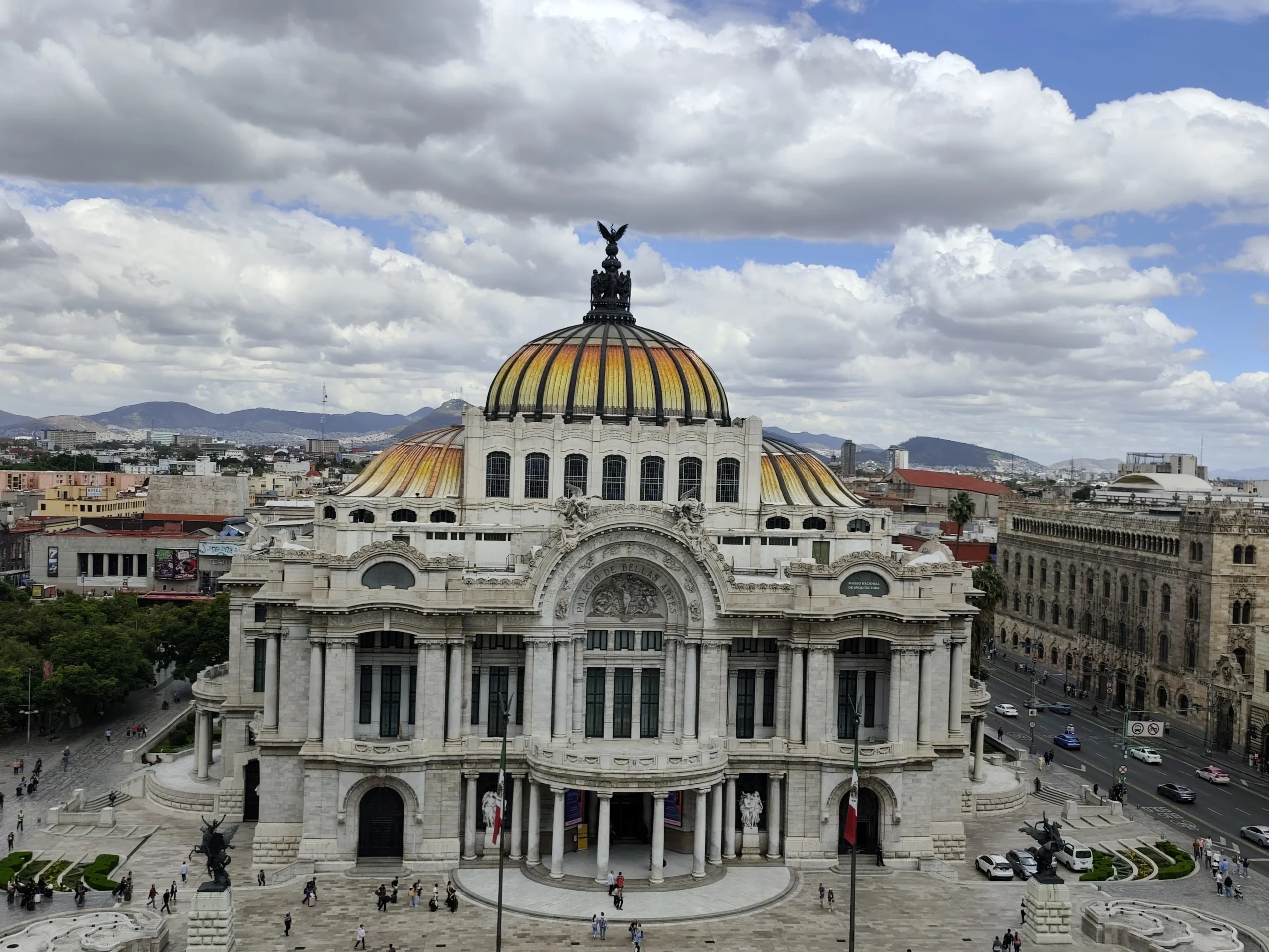 Al contemplarlo desde la Alameda Central, el Palacio se impone como un iceberg de marfil. Su presencia es un golpe de efecto visual que detiene el pulso de una de las zonas más vibrantes de la Ciudad de México. Antes de poner un pie en su plaza, el visitante se siente atraído por un magnetismo histórico; es el punto donde el bullicio de la calle Juárez y el susurro de los árboles de la Alameda convergen para rendir tributo a la arquitectura. Este edificio no es solo una estructura, es el resultado de un sueño que sobrevivió a la guerra y al tiempo, una pieza de joyería a escala urbana que exige que te detengas, respires y prepares los sentidos para lo que estás por descubrir.