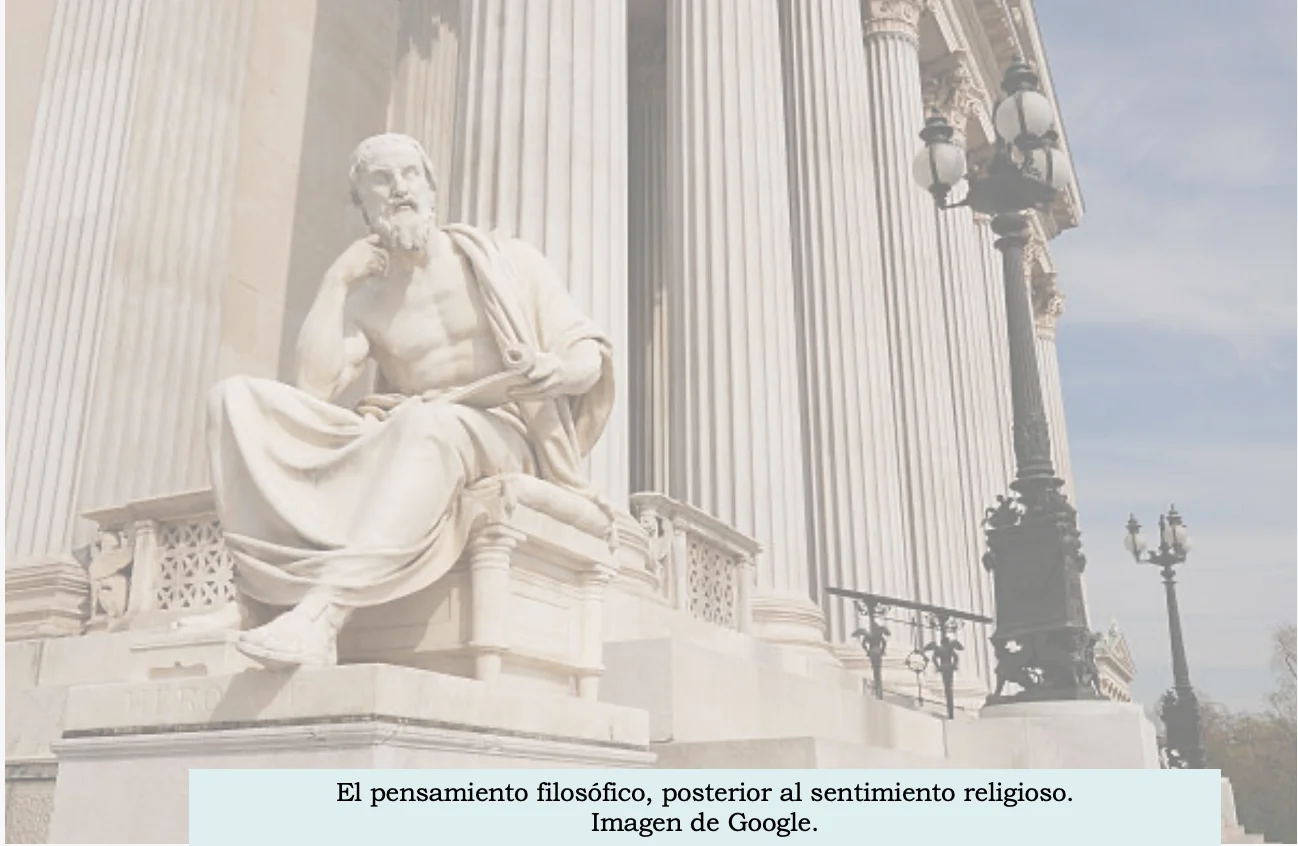 Asomándonos un poco a las primeras reflexiones filosóficas, que pretendieron explicar racionalmente el fenómeno religioso, que dicho sea de paso mantienen su actualidad, encontramos que, según testimonio de Platón, fue Protágoras (490-420 a.C.) uno de los primeros filósofos que habrían llamado la atención sobre el hecho de que el ser humano es el único animal que tiene religión (Cf. Platón, Protágoras, 322 a) afirmando incluso que este tiene características y un parentesco con la divinidad. Desde esta perspectiva, el ser humano difícilmente podría prescindir de algo que forma parte de su esencia. Lo que respondería a muchas cuestiones como las arriba planteadas. Sin embargo, con Demócrito (460-360 a.C.), asoma ya la idea del terror a los elementos de la naturaleza, rayos, truenos y relámpagos, así como a los eclipses, atribuyéndolos a los dioses. Es esta línea de pensamiento la que ha sido continuamente retomada para afirmar que, si la religiosidad es producto del miedo a los fenómenos naturales, este puede ser superado una vez conocidas las causas reales de aquellos fenómenos. Pero vemos que en el presente, cuando dichas causas son por demás conocidas, no han hecho desaparecer la religión. Una tercera y última vía a que aludiremos en este pequeño escrito, es la de otro sofista, Critias (460-403 a.C.) quien sostuvo la por demás interesante hipótesis de que la religión fue introducida por gobernantes astutos con el objetivo de mantener el orden social.
