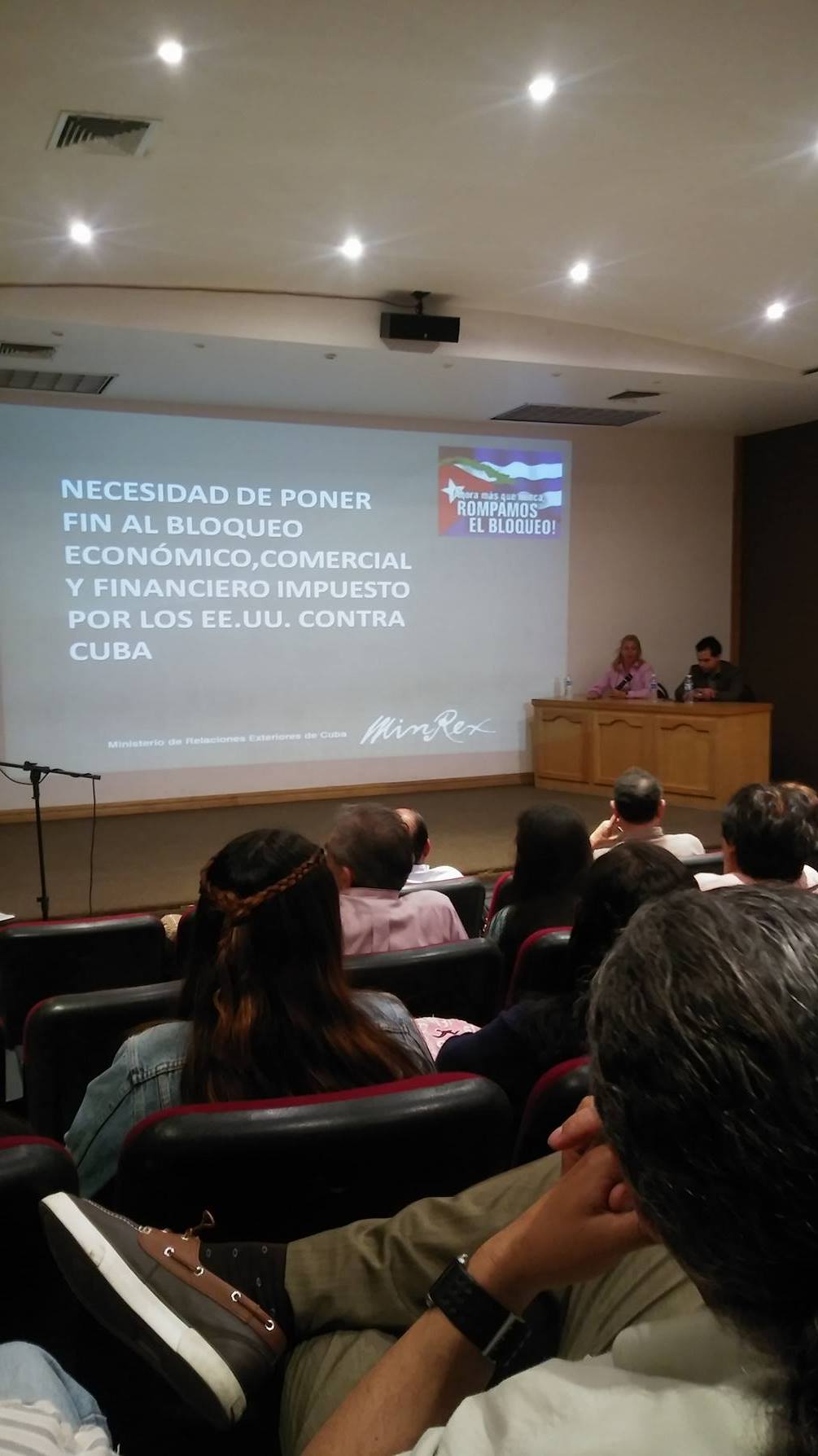 Dentro de los temas expuestos se habló de la relación que tiene Cuba con Estados Unidos, pues dejaron en claro que el país norteamericano no reconoce el derecho que tiene Cuba a establecer relaciones comerciales con otros países, sumergiéndolos en un bloqueo de comunicación, mercado, finanzas, entre otros.