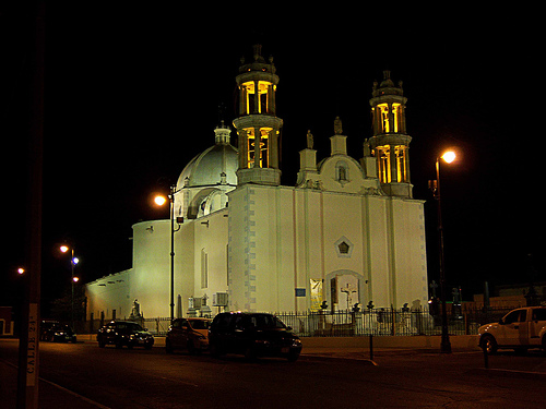 Al entrar se logra ver las estaciones del Viacrucis en bellos relieves y los ángeles representados en sus hermosos vitrales. Entre los arcos de la cúpula se encuentran las escenas de las apariciones de la Virgen de Guadalupe a Juan Diego que fue canonizado el 31 de julio de 2002, por supuesto, rodeado de rosas, para después aparecer en un monumento especial que se le dedicó en 2007.