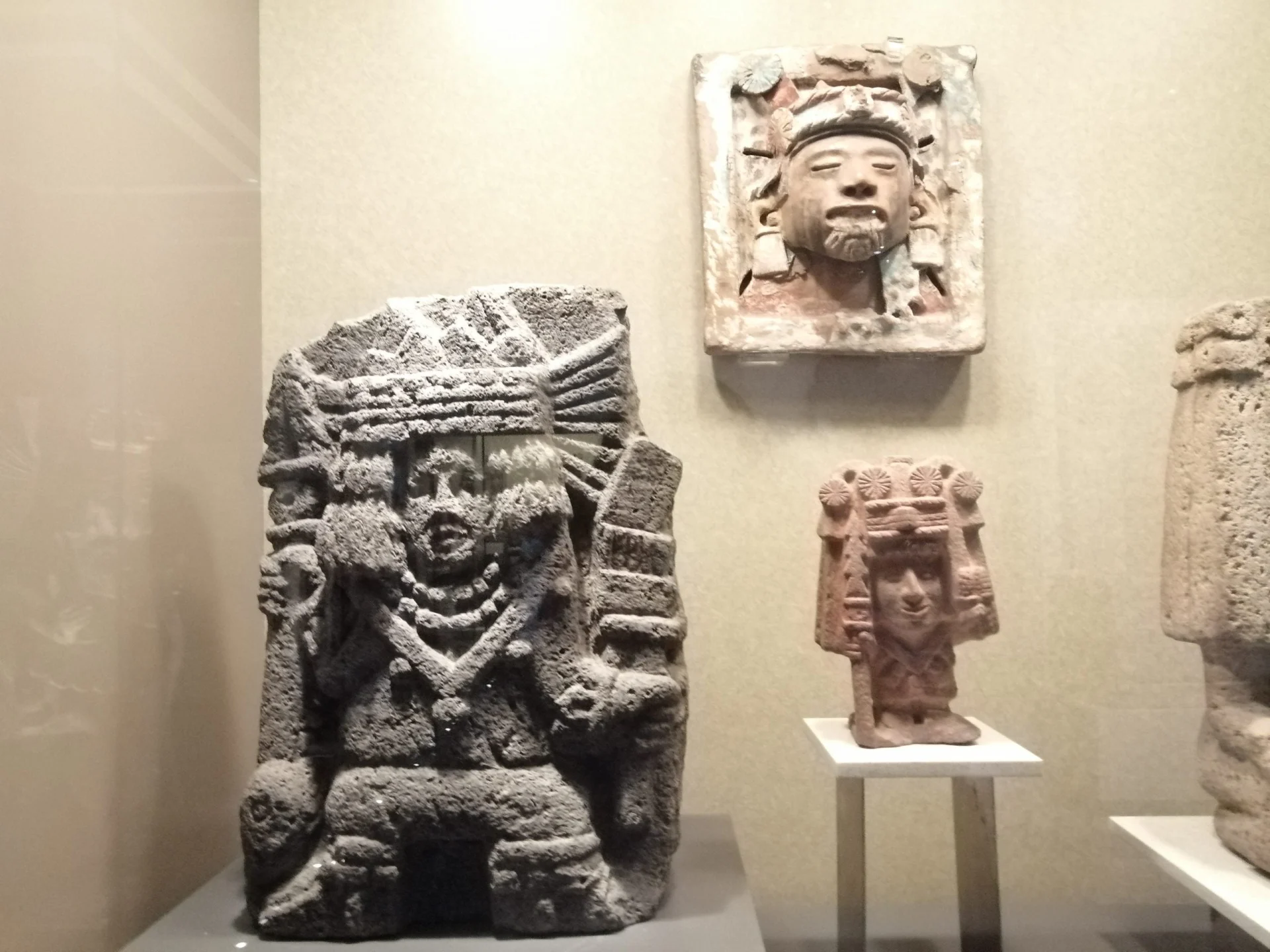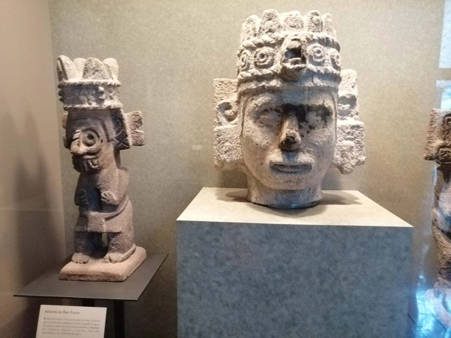 Entre las piezas más importantes que se exhiben destacan la Piedra del Sol, cabezas de la cultura olmeca, esculturas teotihuacanas, un atlante tolteca y el monolito de Tláloc que custodia la entrada del museo.