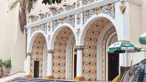 Su majestuosa construcción, visible en aquellos años desde el sur de San Diego, California, presumía sus altos techos decorados al estilo Neoclásico español, daba la impresión a los visitantes de ingresar a algún palacio mudéjar español.